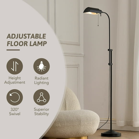 Dewenwils Metal Floor Lamp Industrial Floor Lamp For Living Room Standing Lamp Adjustable Height 180 Rotation Head E26 Lamp Base Rustic Standing Reading Lamp For Bedroom Office Home Decor Black Amazon Com
